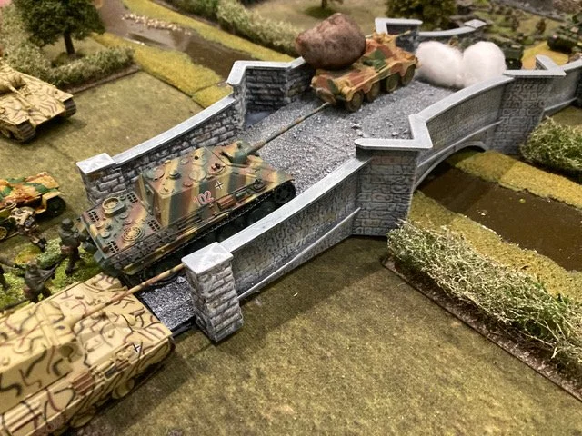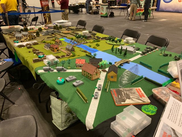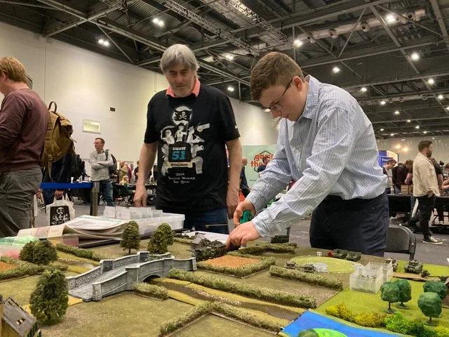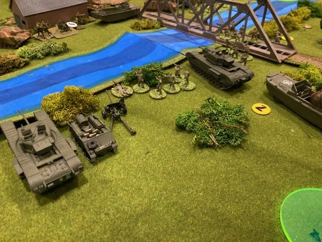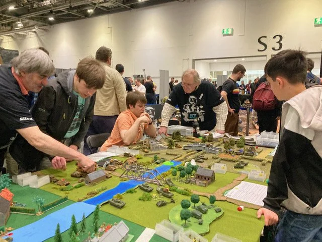 We payed homage to the author of one of the classics of wargaming literature; Gavin Lyall who’s OPERATION WARBOARD brought WW2 wargaming to the masses. Our game; Bridge over the River Quai was set in the summer 1944, somewhere in Normandy. The bridge over the river had to be taken. The mission was to take your battlegroup and secure it! 3 games identical games were available to play side by side on the table presented to represent what players have used over time as the hobby grew and more resources became available.